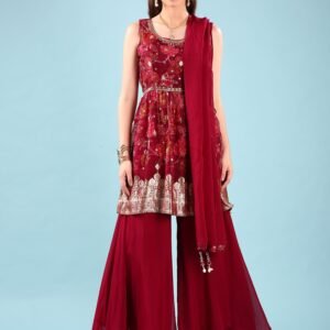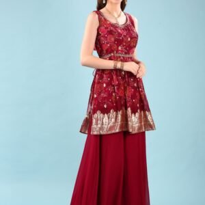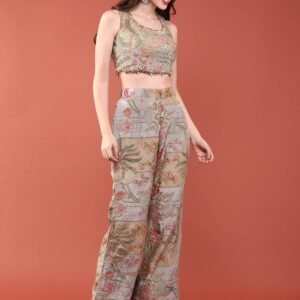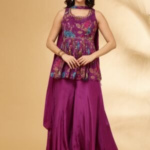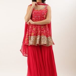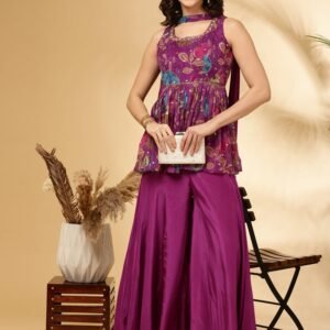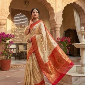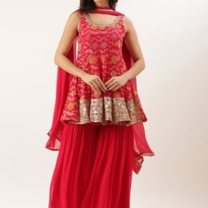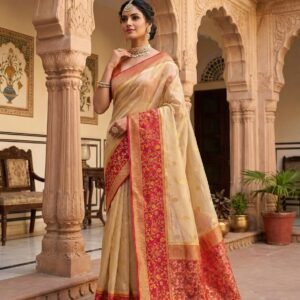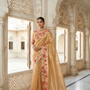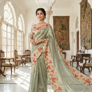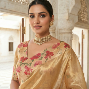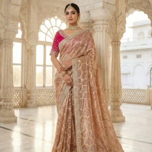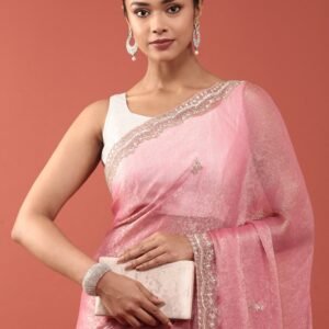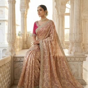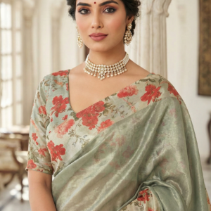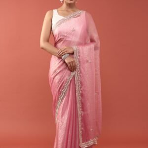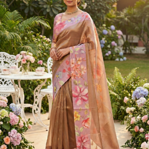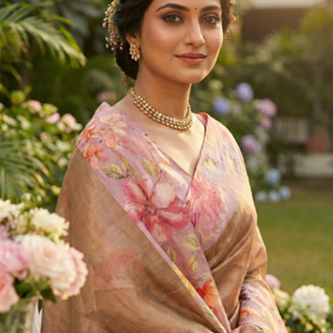 Onion Pink Tissue Digital Print Saree With Readymade Blouse