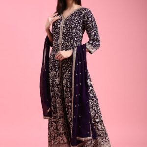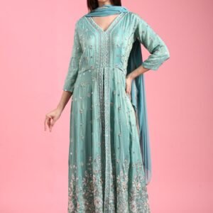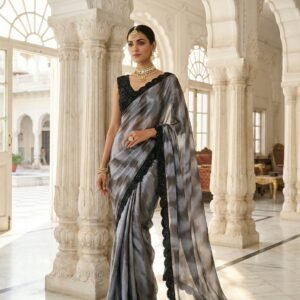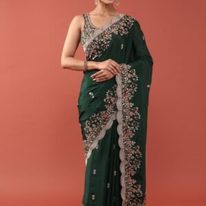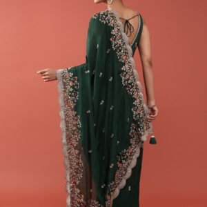Bottle Green Crepe Embroidery Saree With Readymade Blouse