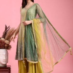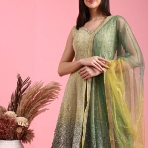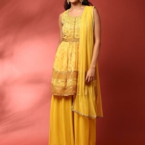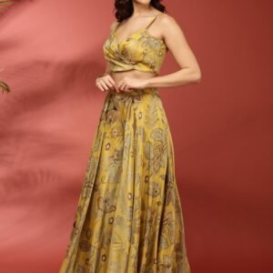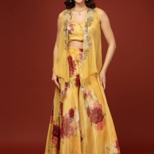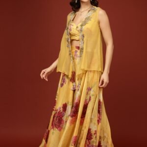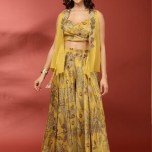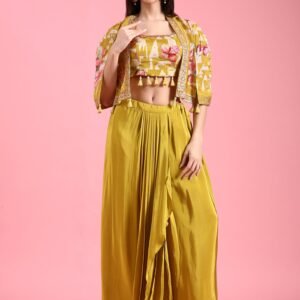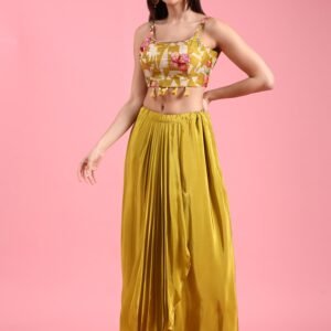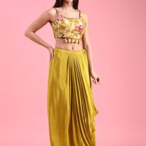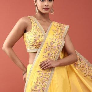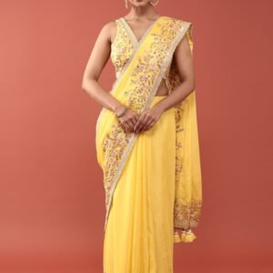 Lemon Crepe Embroidery Saree With Readymade Blouse