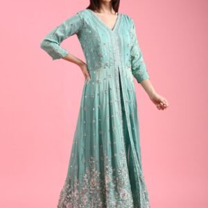 Blue Silk Heavy Beads Work Saree With Readymade Blouse
