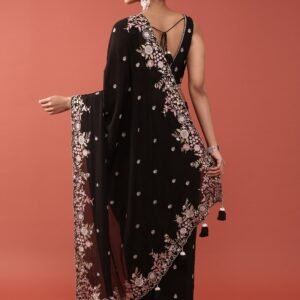 Black Jimmy Choo Floral Sequins Embroidered Saree