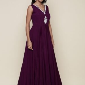 Purple Georgette Embroidered Kali With Palazzo