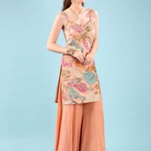 Peach Crepe Hand Embroidery Palazzo Set