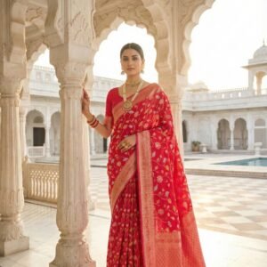 Rani Pink Jacquard Zari Embroidery Saree