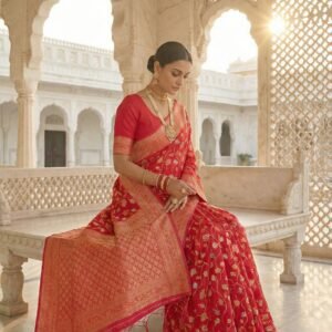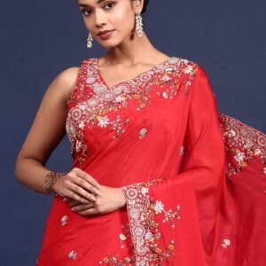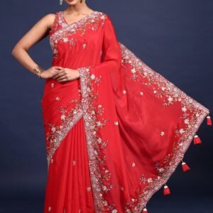 Red Net Heavy Hand Embroidery Saree