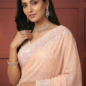 Peach Georgette Sequins Embroidery Saree