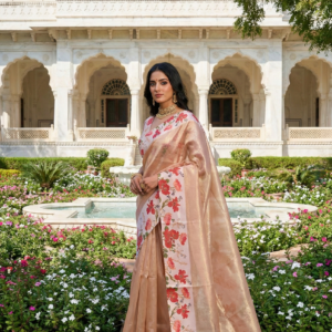 Peach Organza Floral Digital Printed Saree