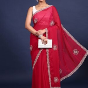 Red Crepe Embroidery Saree With Readymade Blouse